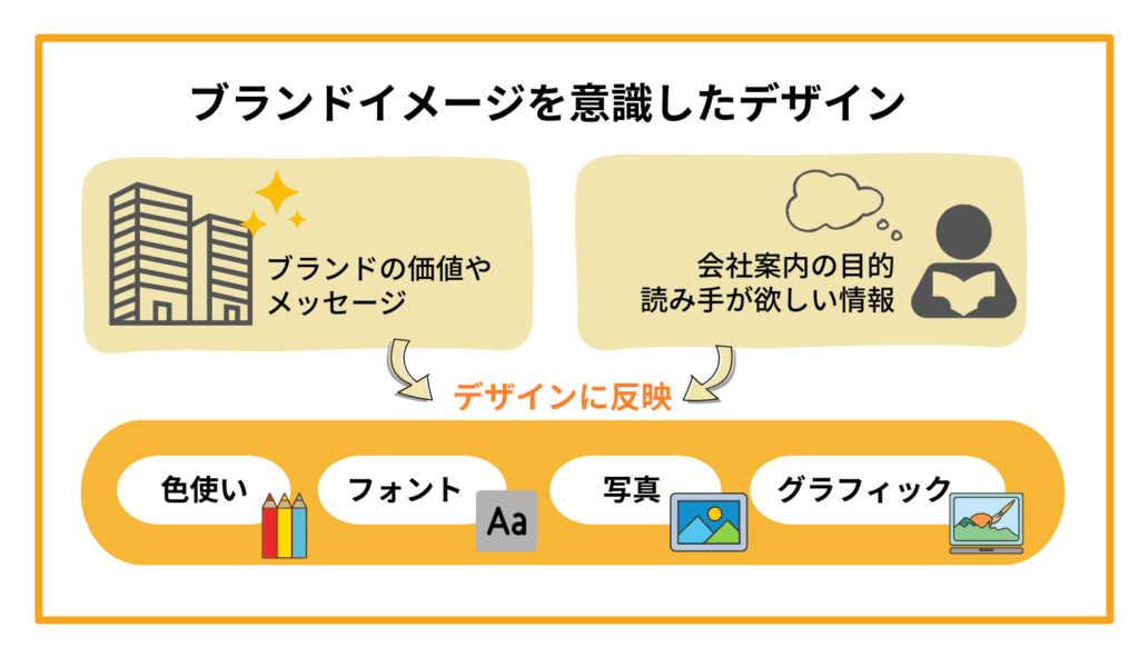 そして、読み手が知りたい情報を盛り込みつつ、ブランドイメージを一貫してデザインに反映させることが良い会社案内を作る鍵となります。